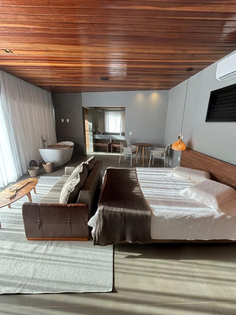 O destaque da Cabana Tulum é, sem dúvida, o seu amplo deck privativo de 25m², que abriga uma espetacular piscina aquecida de borda infinita com hidromassagem.