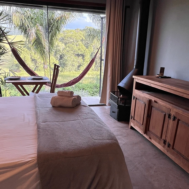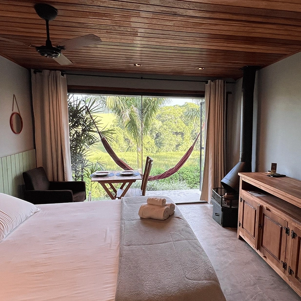 O Chalé Lavanda, no Villa Verde, é um refúgio acolhedor ideal para relaxar em meio à natureza. O espaço oferece cama de casal confortável, lareira, TV, Wi-Fi, ventilador de teto e varanda com rede, criando o ambiente perfeito para descanso, tranquilidade e momentos especiais.